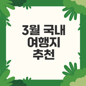 3월 국내 여행지 추천으로 완벽한 봄 여행 계획 세우기 3월은 겨울의 끝자락과 봄의 시작이 맞닿아 있는 특별한 시기입니다. 이 시기 가장 완벽한 여행지를 추천드립니다. 목차 봄꽃이 반기는 전남 구례 산수유 마을 🌼 구례의 산수유꽃축제 소개 🎉 추천 방문 코스 및 볼거리 🗺️ 여행 팁으로 분위기 만끽 🌅 동해안에서 일출을 만끽하는 드라이브 코스 일출 명소와 드라이브 추천 구간 정동진의 새벽 일출 경험 카페에서 바다 뷰 즐기기 .. 카테고리 없음 2025.02.22